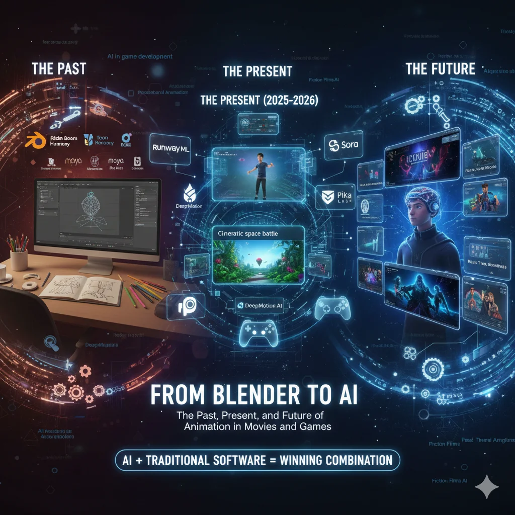 This blog explores the past tools of 2D and 3D animation,the AI-driven present, and the future of AI in animated movies, animated games, and fiction films.